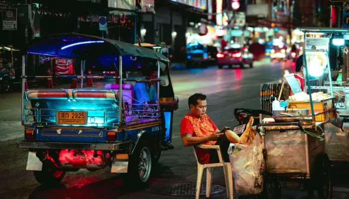 The second man is sitting in an air-conditioned Mercedes. That’s Khun Somchai, a mid-level manager at Siam Commercial Bank (SCB). He earns THB 120,000 a month, has a condo in Thong Lo, and is thinking about upgrading to a bigger unit now that the kids need more room.